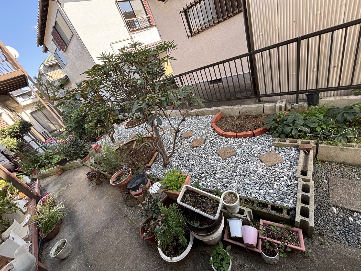 植栽伐採・レンガ設置・砕石敷き均し工事お庭に広がっていた植栽を伐採・整理し、 歩きやすい導線を確保するために 砕石の敷き均しを行いました。 また、花壇まわりにはレンガを設置し、 見た目も整った使いやすいスペースに仕上げています。 雑草のお手入れの負担を減らしつつ、 明るく清潔感のあるお庭へと生まれ変わりました。