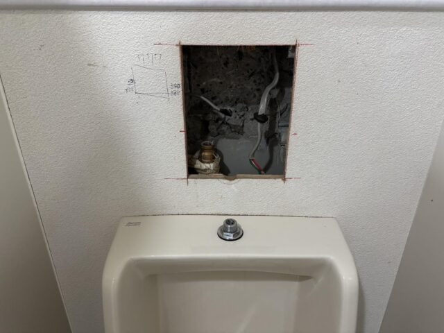 既設の自動フラッシュバルブが経年劣化で反応しにくくなっていたため、新しいセンサー式バルブに交換しました。