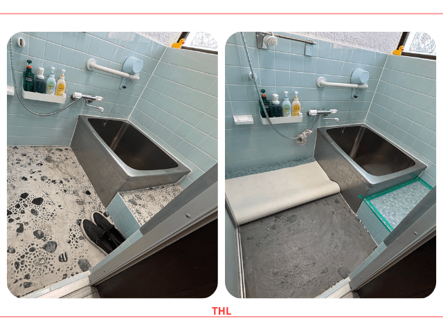 在来浴室のタイル床が冷たく、見た目も気になるとのご相談をいただきました。