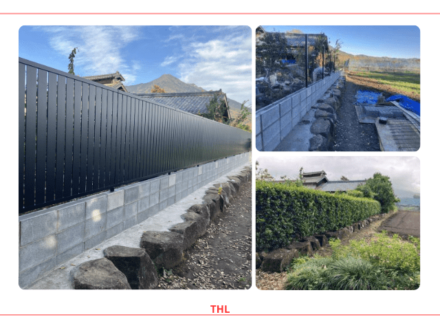つくば市 アルミフェンス外構工事手入れが必要な生垣をアルミフェンスに変更しました。 まず、コンクリートで土間を打ち、その上にブロックを積み、アルミフェンスを設置しました。 お手入れの手間が大幅に減り、日々の管理がぐっと楽になりました。