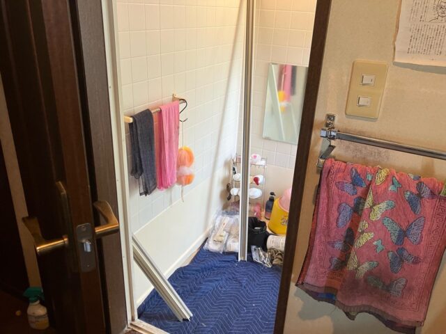 長年の使用で劣化し、開閉もしづらくなっていた浴室ドア。