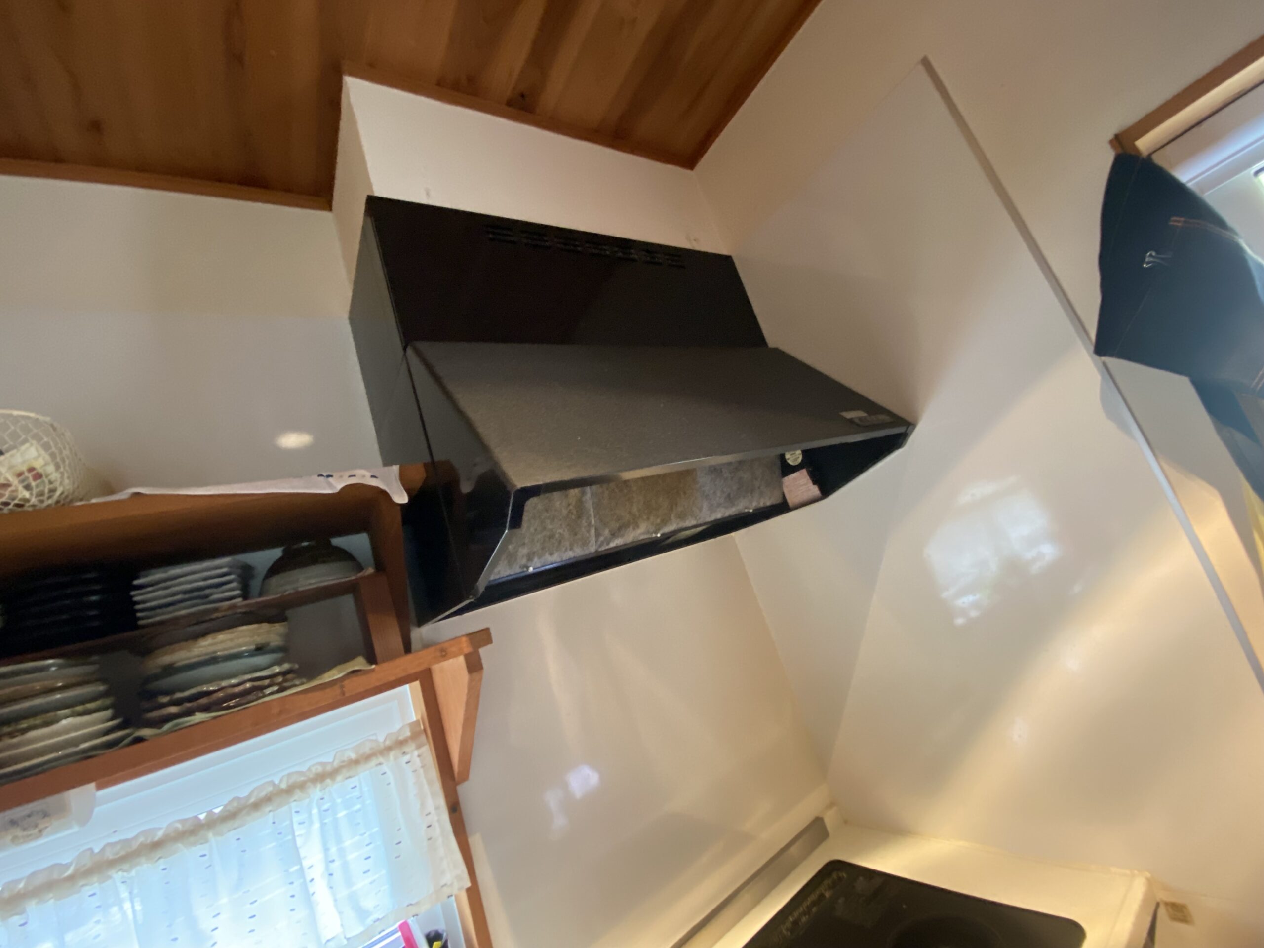 ブーツ型のレンジフードをスリム型へと交換しました。