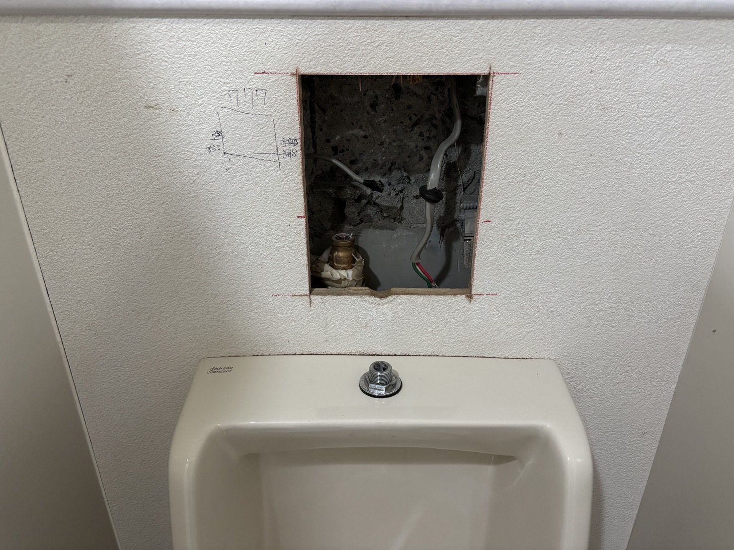 既存壁内の配管位置を確認しながらの慎重な作業でしたが、