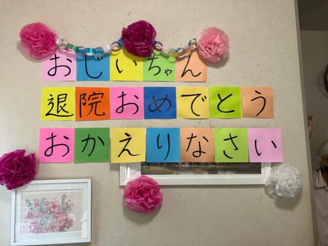 ところが当日、お家に伺うと壁いっぱいに「おじいちゃん退院おめでとう」の飾り付け!